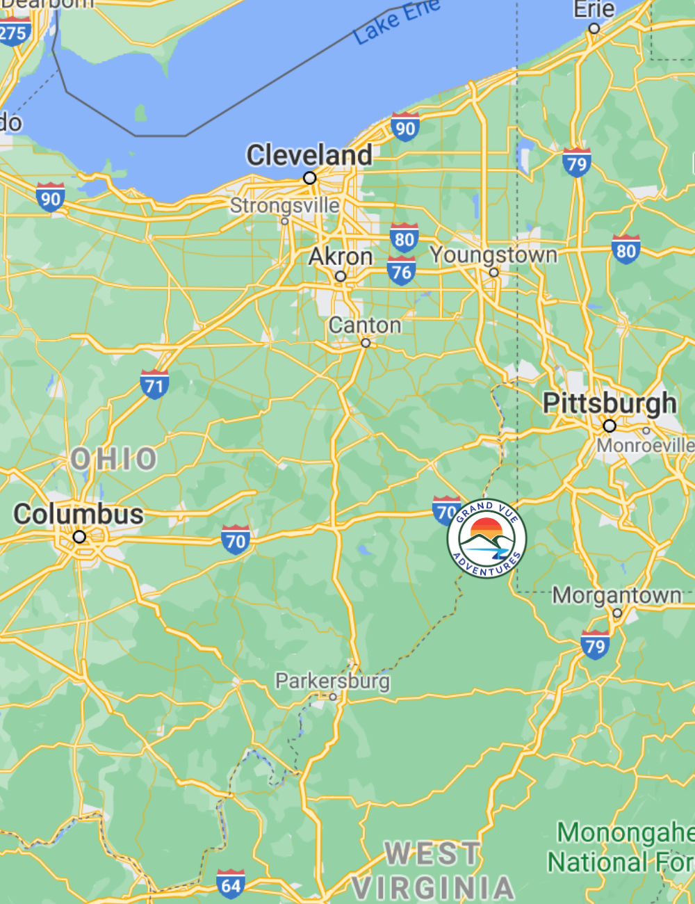 Grand Vue Adventures is ideally located near Moundsville and Wheeling, West Virginia, within Grand Vue Park. Our Ziplines and Adventure Park are just 70 miles from Pittsburgh, Pennsylvania, 150 miles from Cleveland, Ohio, and 140 miles from Columbus, Ohio. No matter where you’re coming from, you’re welcome here – and you’re sure to return! With so many things to do and see, a day spent at Grand Vue Adventures is guaranteed to be both fun and memorable. Plan your adventure now!